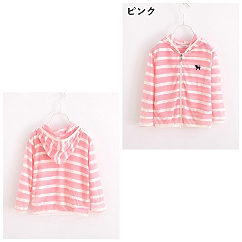胸のワンポイント×ボーダーが可愛い薄手素材のジップアップパーカーです。 日焼けや虫除け対策、肌寒い時の羽織りに最適・持ち歩きにも適しています。(サイズについて)100,110,120,130,140(素材について)綿混