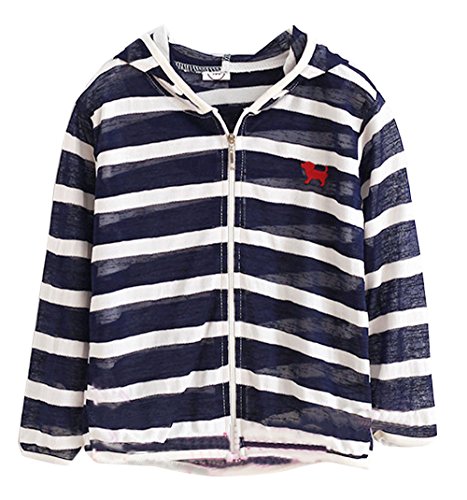 Plus Nao(プラスナオ) ジップアップパーカー 子供服 長袖 ボーダー柄 男児 女児 男の子 女の子 キッズ KIDS 薄手素材 フード付き 羽織り 上 130 ネイビー