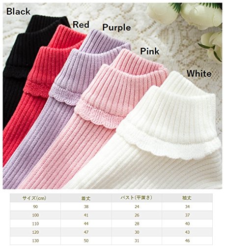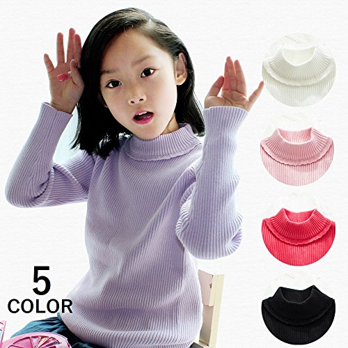 子供用 ニット セーター ハイネック タートルネック 長袖 フリル付き シンプル 無地 キッズ ジュニア 女の子 90 100 110 120 130