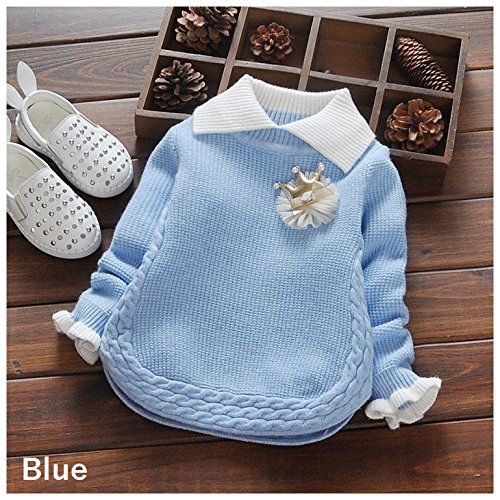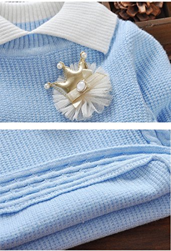 Plus Nao(プラスナオ) 子供用 赤ちゃん用 ニット セーター 襟付き 長袖 フリル付き バイカラー シンプル 無地 ベビー キッズ 女の子 70 80 90 100 ブルー 80