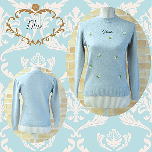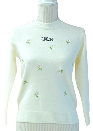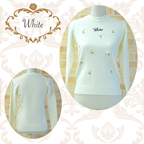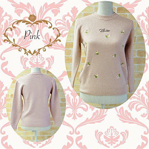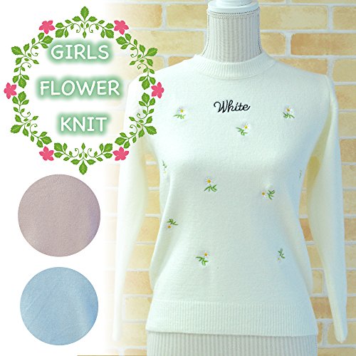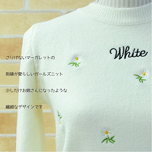 Plus Nao(プラスナオ) 子供用ガールズフラワー刺繍が可愛いニット 150サイズ相当 白 ピンク 水色 ホワイト ブルー なめらかタッチ あたたかい 冬 高見え 小学校高学年 5年生 6年生 - ホワイト