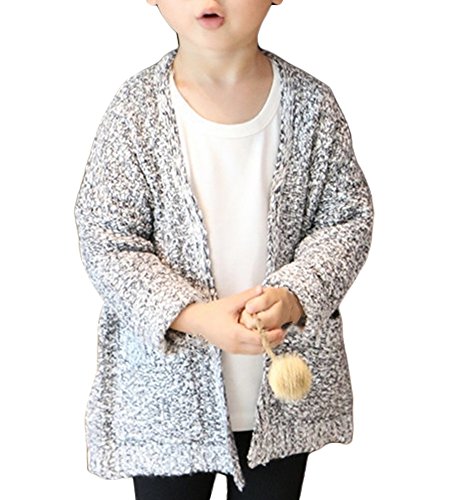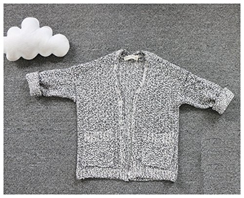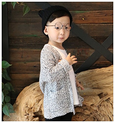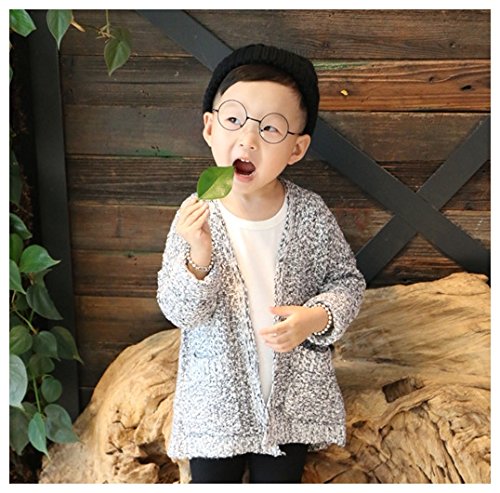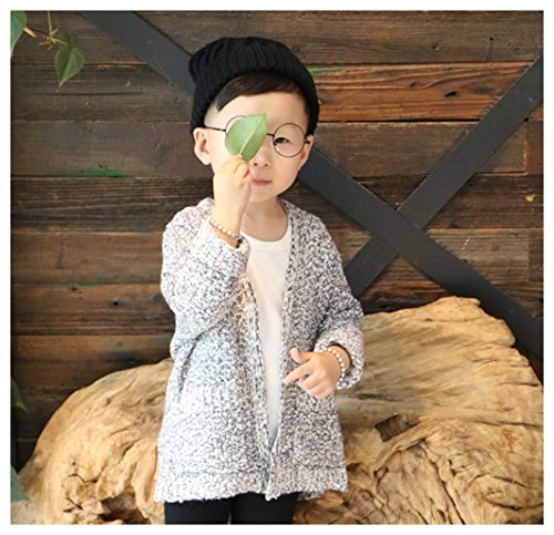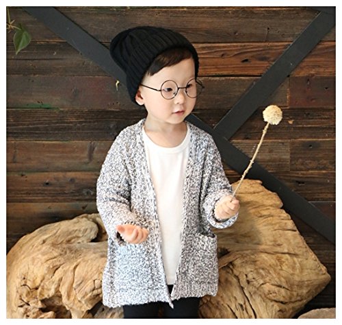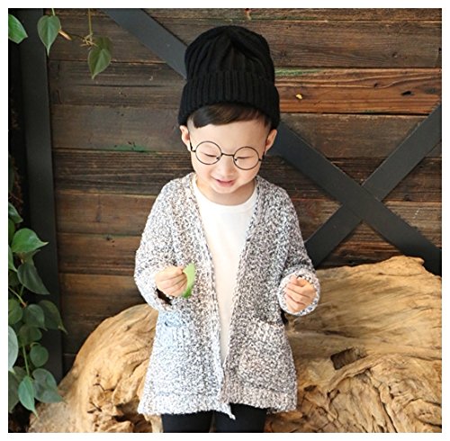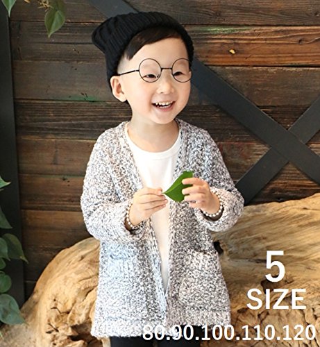 Plus Nao(プラスナオ) 子供用 ニットカーディガン ロングカーディガン ガウン 長袖 ポケット付き 男の子 女の子 キッズ ジュニア 80 90 100 110 120 シンプル グレー 100