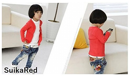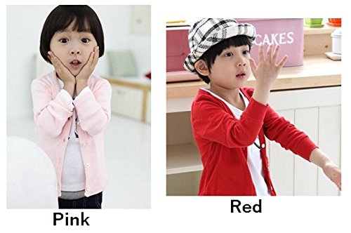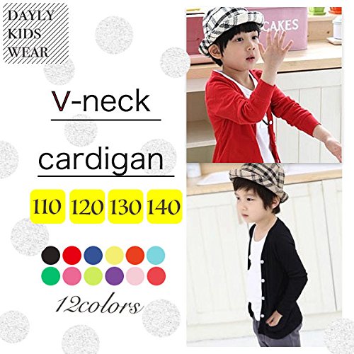 Plus Nao(プラスナオ) 子供用 カーディガン Vネック 長袖 シンプル 無地 男の子 女の子 キッズ ジュニア 110 120 130 140 120 レッド