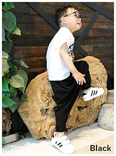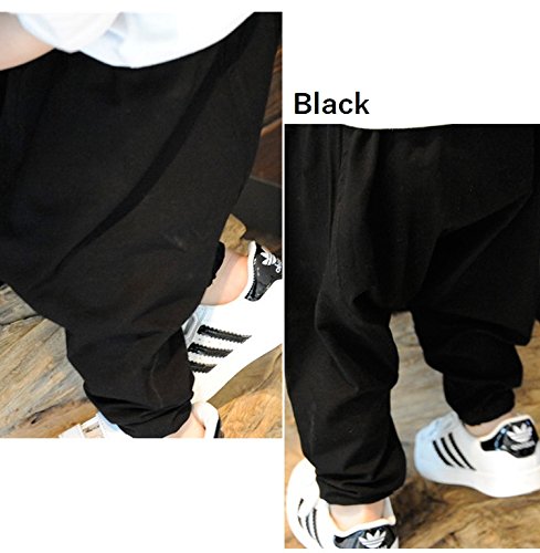 Plus Nao(プラスナオ) 子供用 サルエルパンツ ハーレムパンツ 長ズボン シンプル 無地 コットン カジュアルパンツ ボトムス 男の子 女の子 ベビー キッズ ジュニア 80 90 100 110 120 ブラック 100