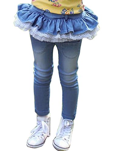 Plus Nao(プラスナオ) デニムパンツ ジーンズ デニムレギンスパンツ デニレギ ストレッチパンツ ロングパンツ 子供服 キッズ KIDS 女の子 女児 小学生 フリル 伸縮性 ガーリー 可愛い スリム 細身 カジュアル 100cm 110cm 120cm 130cm 140cm ダークブルー 120