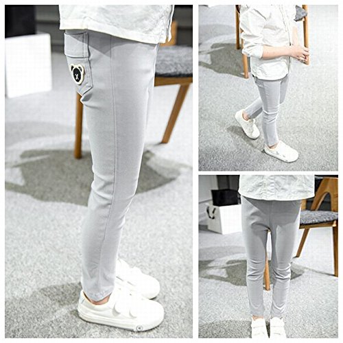 Plus Nao(プラスナオ) 子供用レギンスパンツ レギパン スキニーパンツ スキニー スリム ロングパンツ フルレングス ウエストゴム くま ワッペン 子供 子ども 女の子 キッズ ジュニア 90 グレー