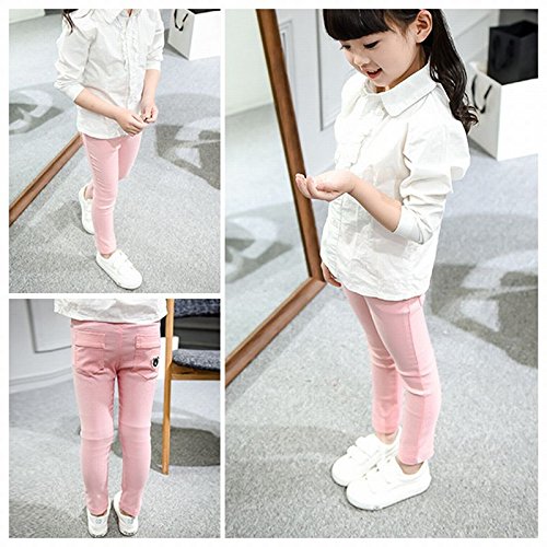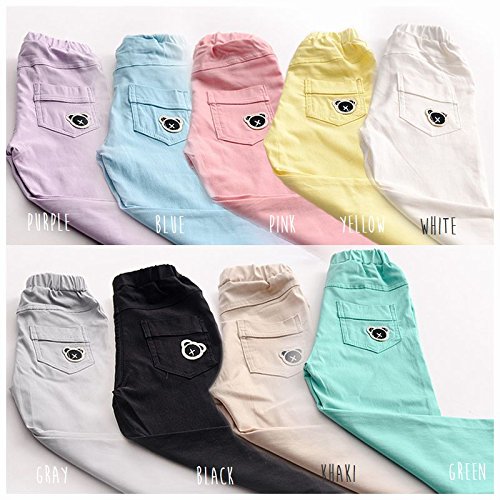 バックポッケに可愛いクマさんのワッペン付・女の子用レギンスパンツ。 ウエストゴムで着脱楽ちん。 豊富なサイズ展開でキッズからジュニアまで♪ 合わせやすいベーシックカラーとシャーベットカラーの全9色。 (サイズについて)※画像をご参照ください(素材について)綿混