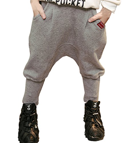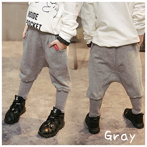 Plus Nao(プラスナオ) 子供用 サルエルパンツ ロングパンツ 長ズボン テーパードパンツ シンプル 無地 ウエストゴム カジュアルパンツ ボトムス 男の子 女の子 キッズ ジュニア 90 100 110 120 130 グレー【ノーマル】 110