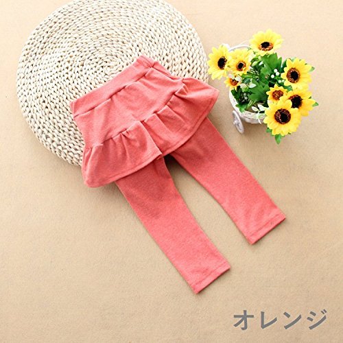 (Plus Nao) 子供用・スカート付レギンスパンツ・スパッツ・スカッツ・シンプル無地・カジュアル 140 オレンジ