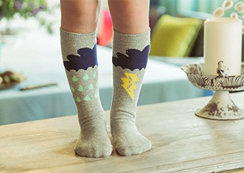 子供用 ハイソックス 靴下 雲&雷デザイン 女の子 男の子 0才-6才 肌着 下着 くつ下 ベビー キッズ ジュニア