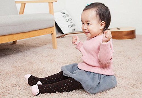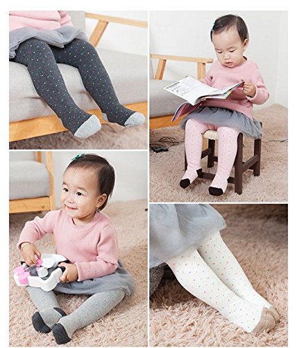 Plus Nao(プラスナオ) タイツ ベビー キッズ 子供用 インナー スパッツ ドット柄 靴下 ソックス シンプル 防寒 あったか カジュアル 5カラー 4-6才 白