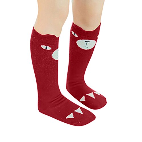 Plus Nao(プラスナオ) キッズソックス ベビーソックス 子供 キッズ ソックス 靴下 くつ下 くつした 子供ソックス ハイソックス 子供靴下 女の子用 男の子用 アニマルフェイス 動物 プリント 柄 シンプル おしゃれ 可愛い 配色 4-6才 ダークレッド