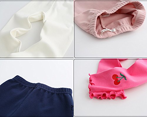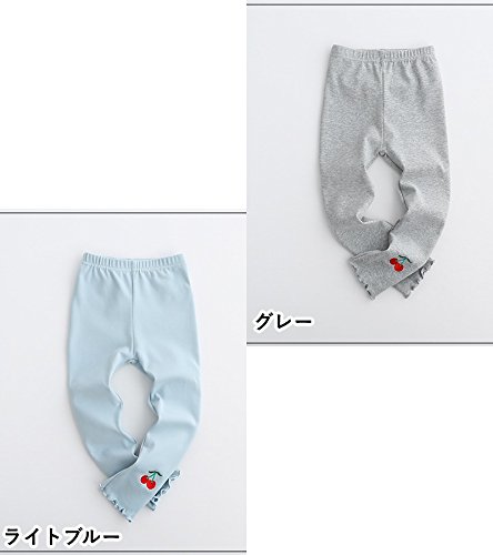 Plus Nao(プラスナオ) レギンスパンツ スパッツ レギパン ロングパンツ 子供用 女の子 女児 さくらんぼ チェリー フリル キッズ KIDS ウエストゴム 楽ちん 可愛い ガーリー シンプル カジュアル 100cm ライトブルー