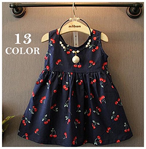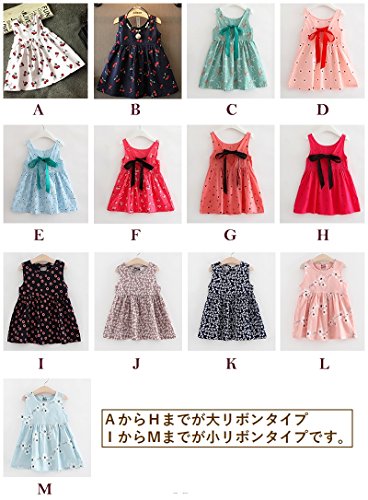 Plus Nao(プラスナオ) ミニワンピース キッズ ガールズ 子供服 ノースリーブ 半袖 フレアワンピース バックリボン カジュアル 花柄 サクランボ 女の子 ジュニア 夏用 リゾート 120 E