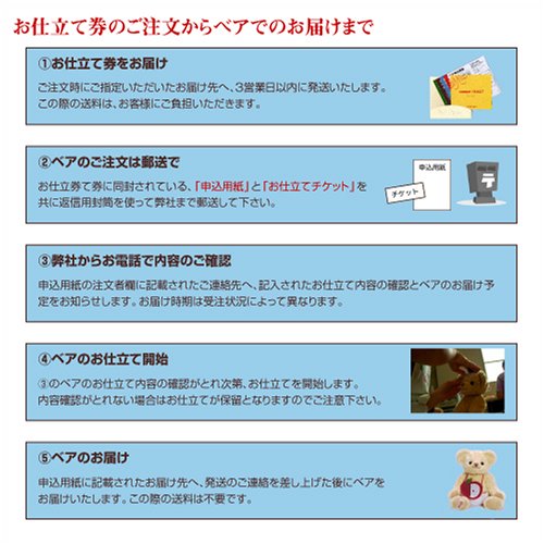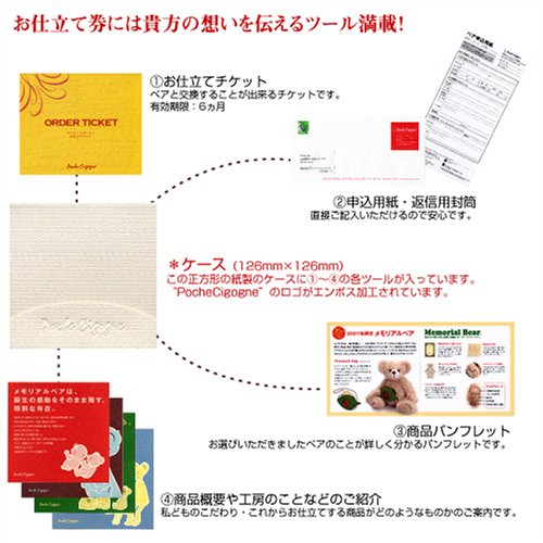 - 大切なバースデータを確実にお客様自身で記入していただけるお仕立て券スタイル。ベアのお届けはお仕立て券返送時に詳しくお知らせします。
