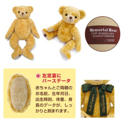 ◆2008年、メモリアルベア誕生12周年を記念してデザインされたモデル。色違いの「サンタバージョン」と合わせて2008体限定となっています。もちろん出生時の「身長と体重」でおひとりのためにお仕立てしますので、大きさや重さはそれぞれ違います。 ◆こちらは、お仕立て券でのお届けとなります。 ベアではございませんので、ご注意ください。 ◆記入済みのお仕立て券を返送していただいてからのお仕立てとなります。詳しいお届け日はお仕立て券が弊社に届き次第、ご連絡致します。
