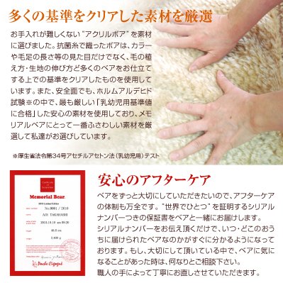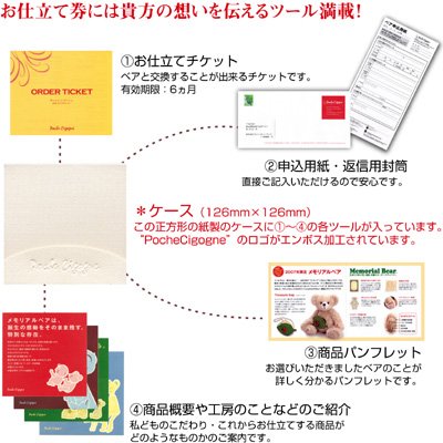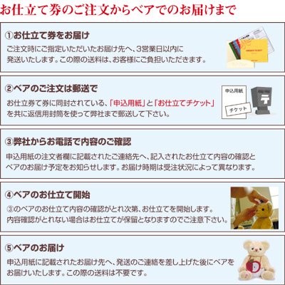 - 大切なバースデータを確実にお客様自身で記入していただける【お仕立て券スタイル】。 ◆ベアのお届け時期は、お仕立て券が弊社に届き次第、ご連絡致します。