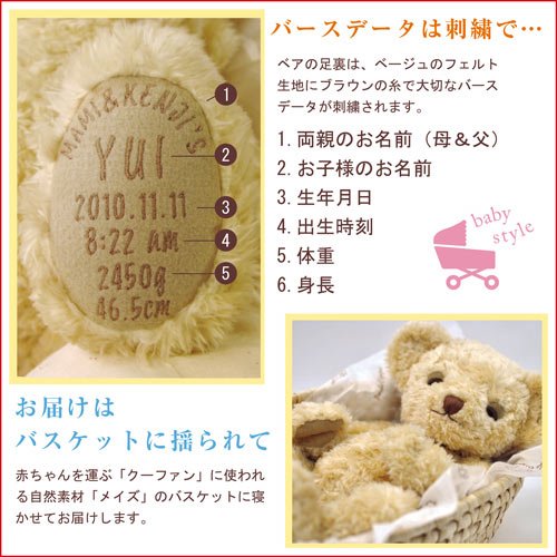 - 大切なバースデータを確実にお客様自身で記入していただける【お仕立て券スタイル】。 ◆ベアのお届け時期は、お仕立て券が弊社に届き次第、ご連絡致します。