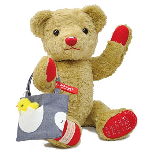 ◆出生時の身長と体重のオーダーメイドティベアです。メモリアルベア誕生から20周年を迎える2016年。 小さな足跡ですが、これまでを振り返り、新しいエッセンスが感じられるベアをデザインしました。 ◆伝統を継いだフォーマルなお顔に、20周年イヤーの祝福を込めた「紅」の鼻と口元で表情をつくりました。 どこにもない特別感が味わえます。鼻には、横に流れるのシルバーの糸。 「輝かしい未来が訪れますように」と願いを込めて、フラッシュラインを刺繍しました。 もちろん、熟練職人にしかできない手刺繍です。 ◆小さな宝物をしまってほしいと願って、私たちが作ったバッグがトレジャーバッグです。 コンセプトの「ReBorn」をタマゴから生まれるヒヨコで表現しました。ふわふわのヒヨコは、タマゴから出せるマスコット的かわいい子。裏面にもタマゴのアップリケで、内側は水玉模様。細部まで手を抜かないバッグです。 ◆こちらは、お仕立て券でのお届けとなります。 ベアではございませんので、ご注意ください。 ◆記入済みのお仕立て券を返送していただいてからのお仕立てとなります。詳しいお届け日はお仕立て券が弊社に届き次第、ご連絡致します。