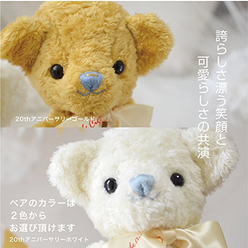 ◆出生時の身長と体重のオーダーメイドティベアです。発売20年目を迎えるメモリアルベア。 これを祝し、私たちらしさをバージョンアップしてデザインしました。 今回特別に2色からお選びいただけます。ゴールド、オフホワイト共に輝くような発色です。 ◆これまで、様々なデザイン、表情のメモリアルベアをご提案してきました。「うちの子に似ている」 そう言って頂けるのは最高の賛辞。 愛されるベアの表情を研究してデザインしたのがこの子です。 鼻の刺繍は、ゴールドは深い水色、オフホワイトは薄い水色。「輝かしい未来が訪れますように」と願いを込めたフラッシュラインをそれぞれ「ゴールド」「シルバー」で刺繍しました。 全て熟練職人にしかできない手刺繍です。 ◆小さな宝物をしまってほしいと願って、私たちが作ったバッグがトレジャーバッグです。 生まれた時がよみがえるメモリアルベアと一緒に、あの時の思い出をカタチで仕舞っておけたら…そう考えて誕生させたのがトレジャーバッグです。20周年は特別な想いを込めて、私どもポッシュ・シゴーニュのマークをバッグにしました。「ポッシュ・シゴーニュ」は「コウノトリのポケット」という意味です。 ◆こちらは、お仕立て券でのお届けとなります。 ベアではございませんので、ご注意ください。 ◆記入済みのお仕立て券を返送していただいてからのお仕立てとなります。詳しいお届け日はお仕立て券が弊社に届き次第、ご連絡致します。