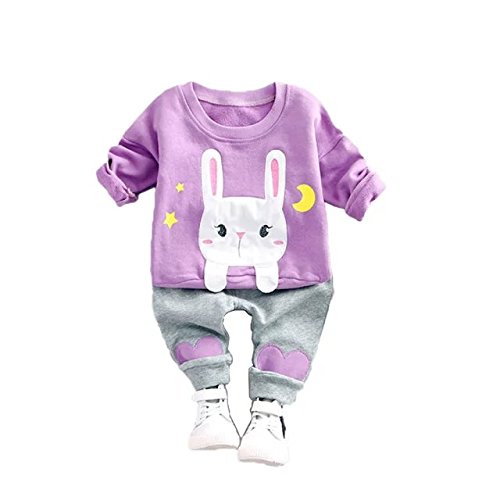 Pojour 春 0-2歳 2-7歳女の子可愛い上下セット 綿 キッズ 通気 パープル(80cm)