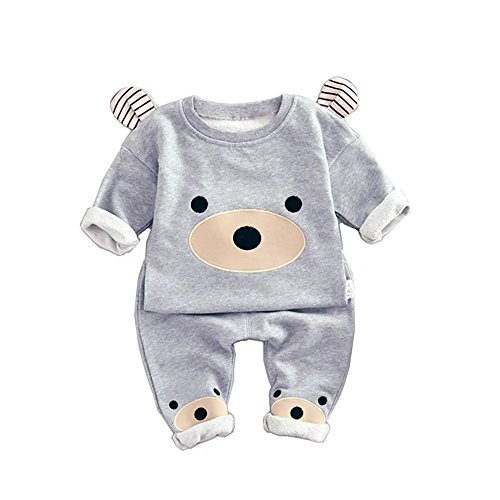 Pojour 春 0-2歳 2-7歳男女兼用可愛い上下セット 綿 キッズ 通気 グレー(80cm)