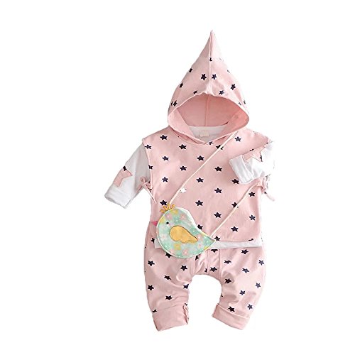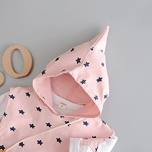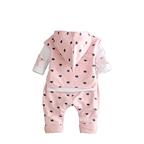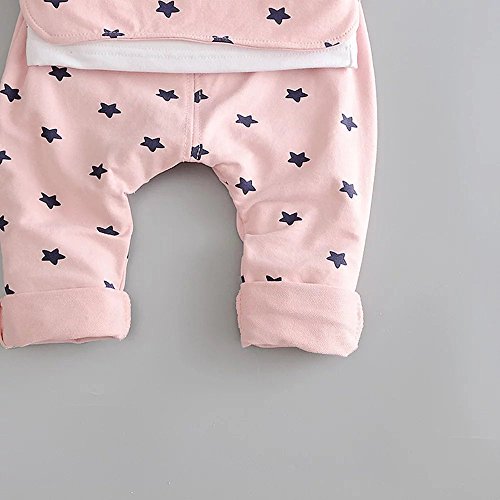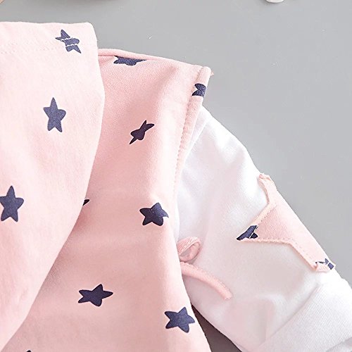 Pojour 春 0-2歳 2-7歳女の子可愛い星3セット キッズ 長袖 通気 綿 ピンク(70cm)