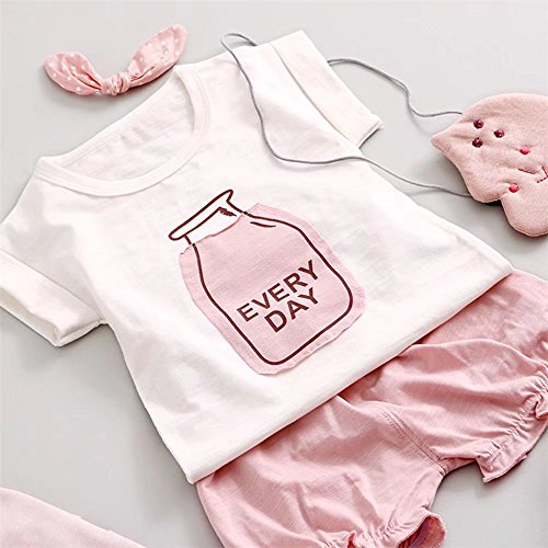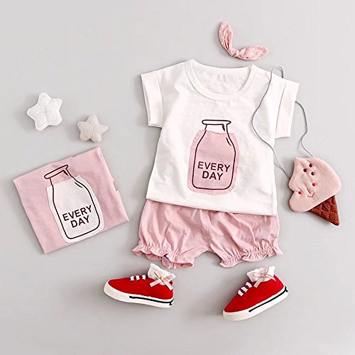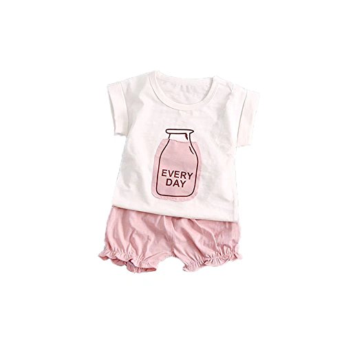 Pojour 夏 1-6歳キッズセット 上下セット Tシャツ+パンツ 子供かわいいボトルブラウス 綿 通気 白(90cm)