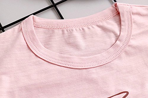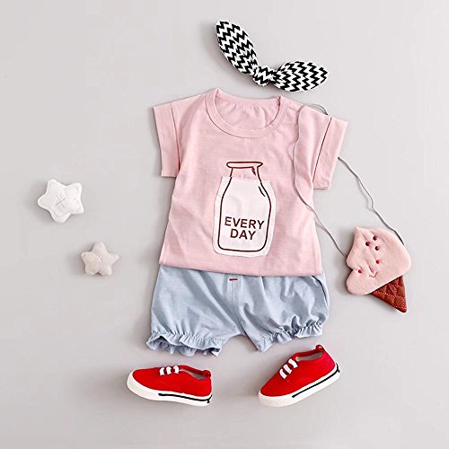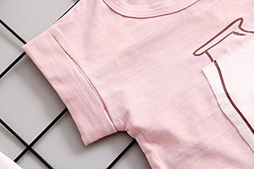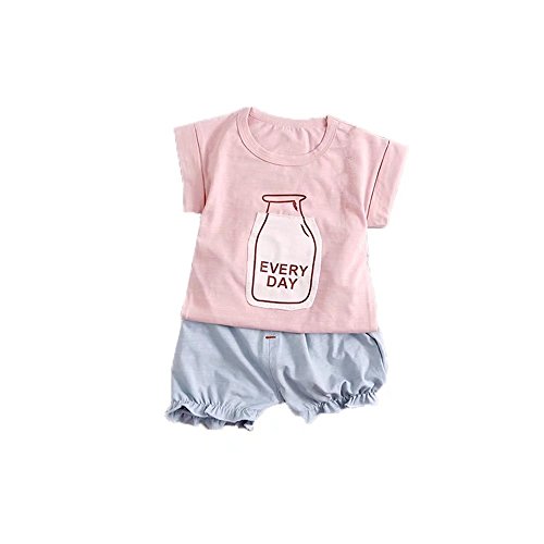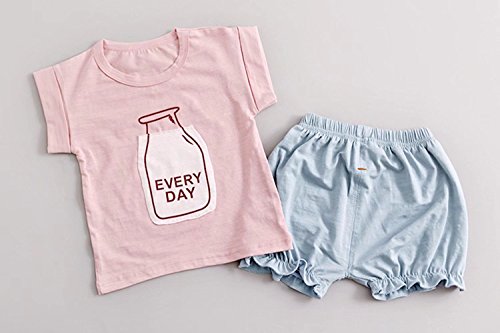 Pojour 夏 1-6歳キッズセット 上下セット Tシャツ+パンツ 子供かわいいボトルブラウス 綿 通気 ピンク(100cm)