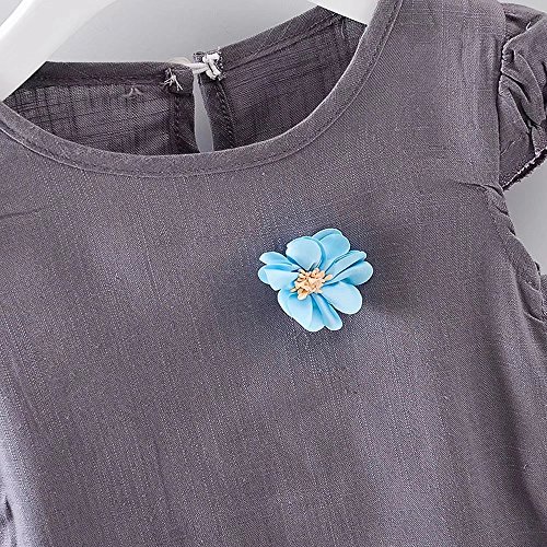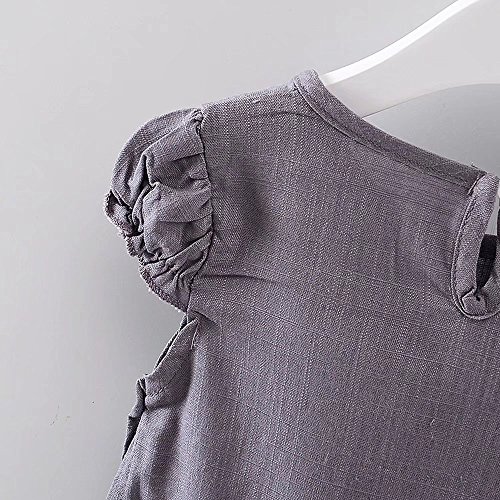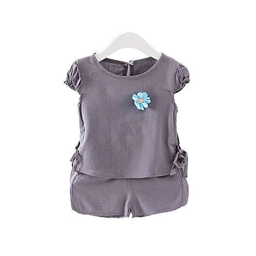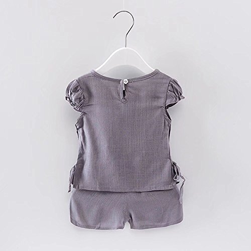 女の子の服 夏 上下セット Pojour 1-6歳キッズ用 子供かわいい無地Tシャツ 綿麻 通気 グレー(100cm)