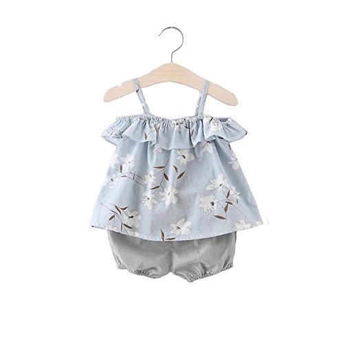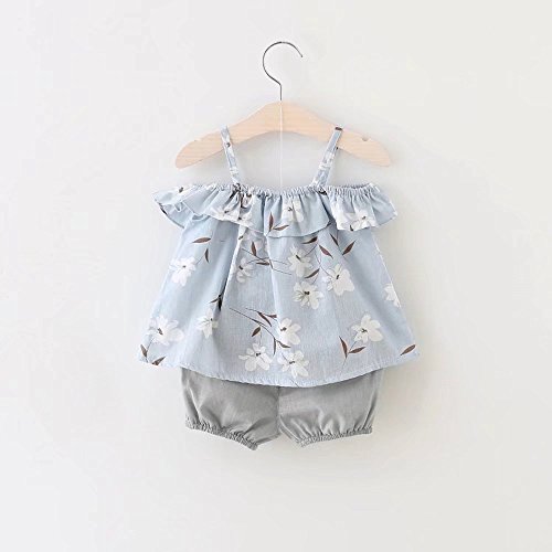 女の子の服 夏 キャミソール+パンツ Pojour1-6歳キッズ用 2セット 子供かわいい服 綿 通気 ブルー(90cm)