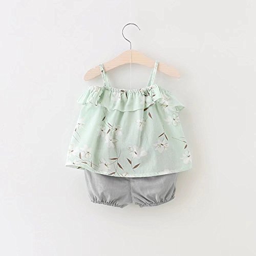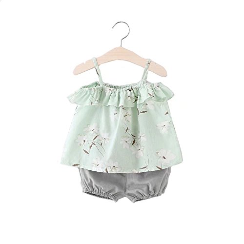 女の子の服 夏 キャミソール+パンツ Pojour1-6歳キッズ用 2セット 子供かわいい服 綿 通気 グリーン(80cm)