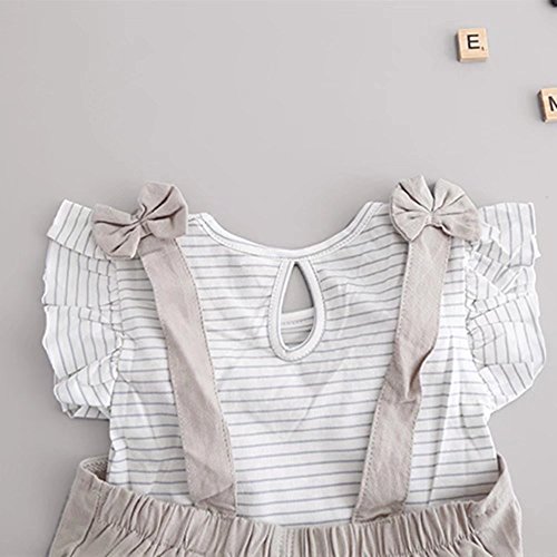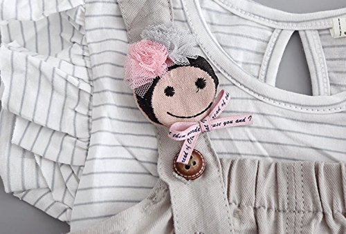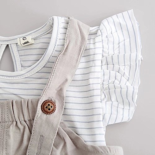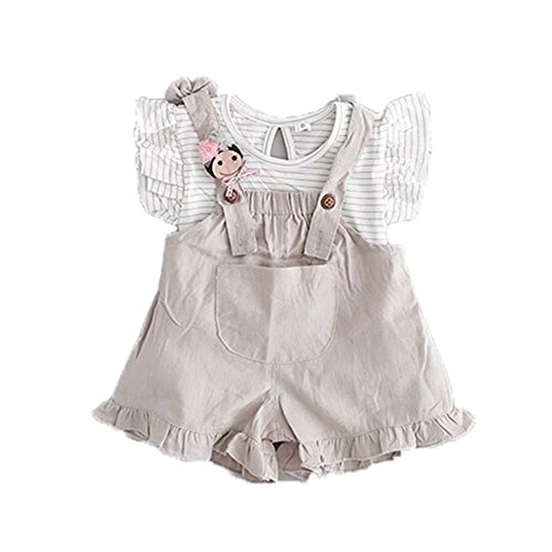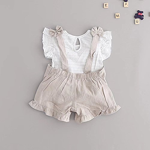 女の子カバーオール Tシャツ+パンツ Pojour夏 1-6歳キッズ用 2セット 子供かわいいストライプブラウス 綿 通気 白(80cm)