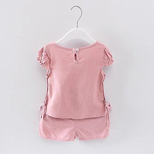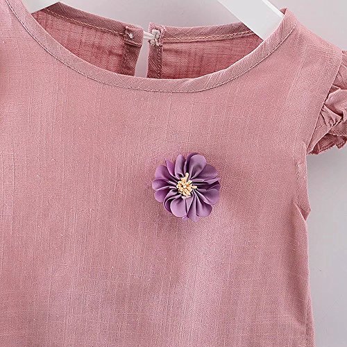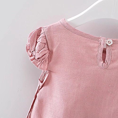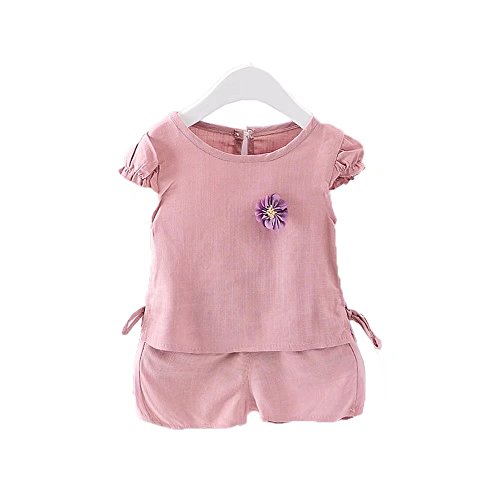女の子の服 夏 上下セット Pojour 1-6歳キッズ用 子供かわいい無地Tシャツ 綿麻 通気 ピンク(90cm)