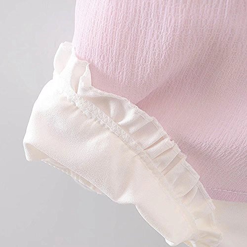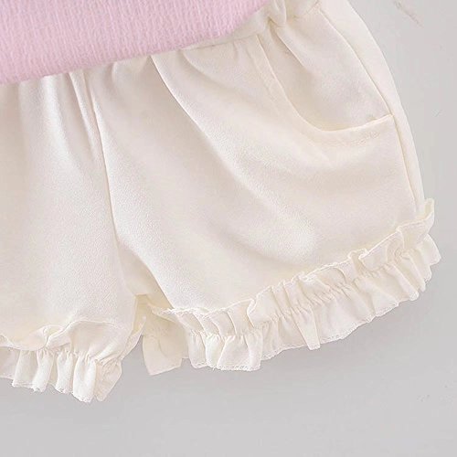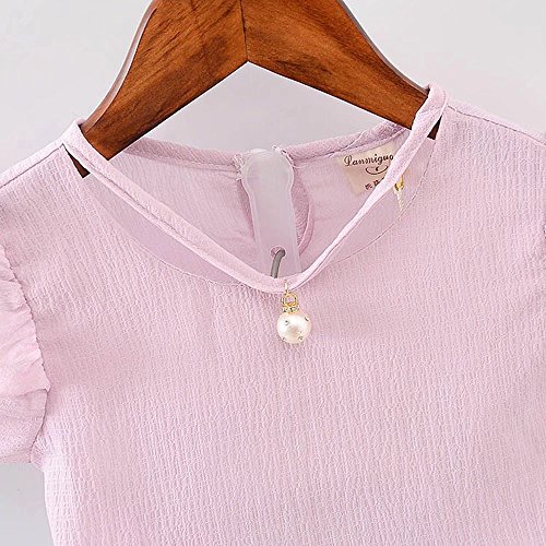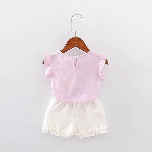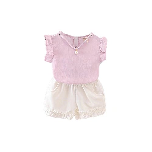 女の子の服 夏 Tシャツ+パンツ Pojour1-6歳キッズ用 2セット 子供かわいいシフォンブラウス 綿 通気 ピンク(90cm)