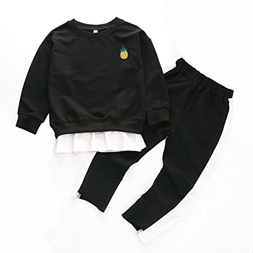 Pojour ベビー服 子供トレーナー 女の子のパジャマ 可愛いパイナップル柄 長袖+ロングパンツ キッズ用 ガールズ上下セット 秋春