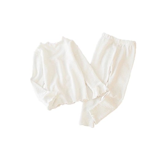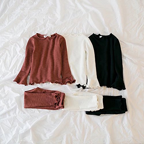 Pojour ベビー服 女の子可愛い上下セット キッズトランペット袖 赤ちゃん無地パジャマ 丸首 シャツ+ロングパンツ 長袖 春秋 ルームウェア 出産祝い