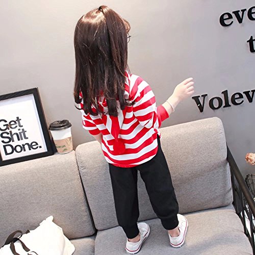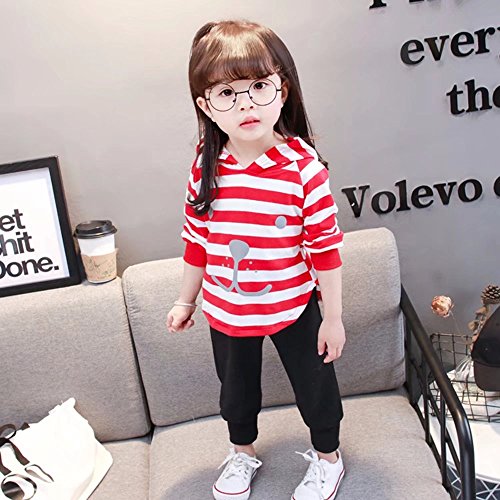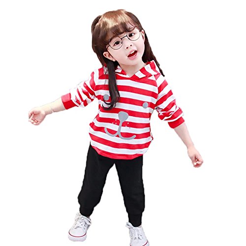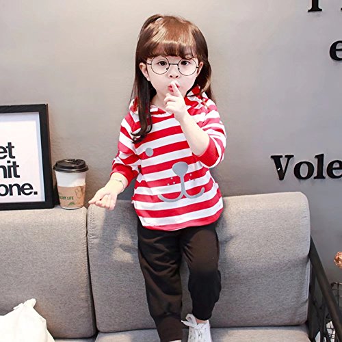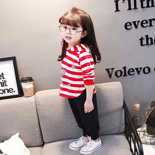 Pojour ベビー服 女の子パジャマ 春秋 子供可愛いストライプTシャツ キッズ上下セット 長袖 女児プレゼント ガールズ お出かけ 通園 通学 出産祝い