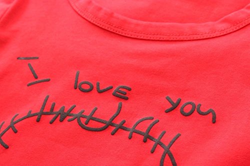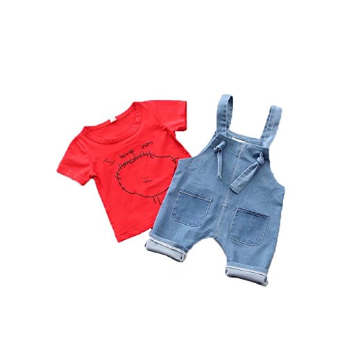 Pojour 夏 1-6歳キッズカバーオール 子供かわいい服 2セット Tシャツ+デニムストラップスカート 通気 綿 赤(80cm)