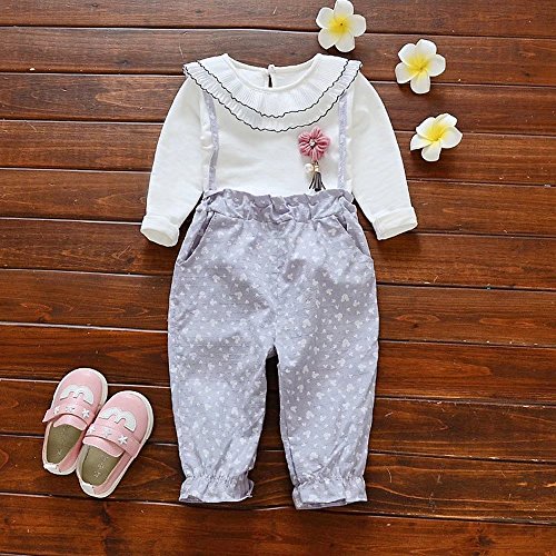 子供上下セット服 女の子 服 長袖 秋 Pojour Tシャツ&オーバーオール 可愛いベビールームウェア 子供 丸首 普段着 カジュアル スポーツ 旅行 記念日 プレゼント ブルー
