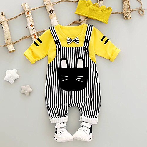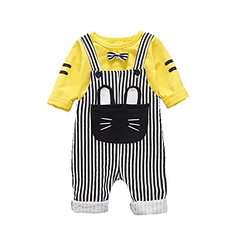 子供上下セット服 男の子 女の子 服 長袖 秋 Pojour Tシャツ&オーバーオール 可愛いネゴ ベビールームウェア 子供 丸首 普段着 カジュアル スポーツ 旅行 記念日 プレゼント 黄色