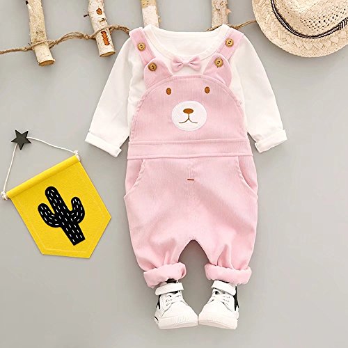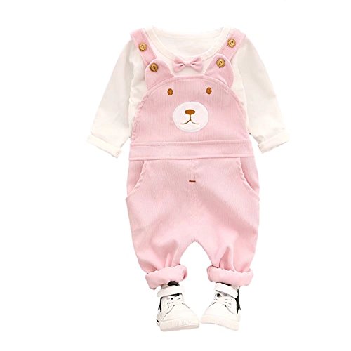 子供上下セット服 男の子 女の子 服 長袖 秋 Pojour Tシャツ&カバーオール 可愛いクマ ベビールームウェア 子供 丸首 普段着 カジュアル スポーツ 旅行 記念日 プレゼント ピンク