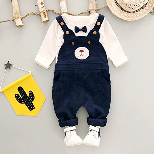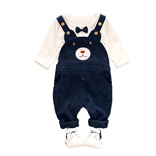 子供上下セット服 男の子 女の子 服 長袖 秋 Pojour Tシャツ&カバーオール 可愛いクマ ベビールームウェア 子供 丸首 普段着 カジュアル スポーツ 旅行 記念日 プレゼント ブルー