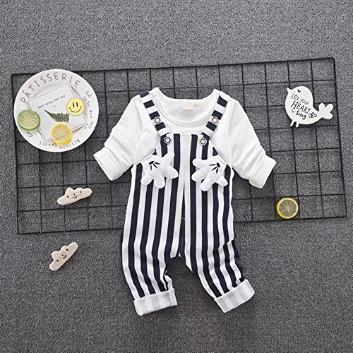 子供上下セット服 男の子 女の子 服 長袖 秋 Pojour Tシャツ&カバーオール 可愛いストライプ ベビールームウェア 子供 丸首 普段着 カジュアル スポーツ 旅行 記念日 プレゼント 白