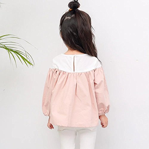 Pojour 春 0-5歳女の子向き パッチワークブラウス 子供かわいいシャツ ピンク(80cm)