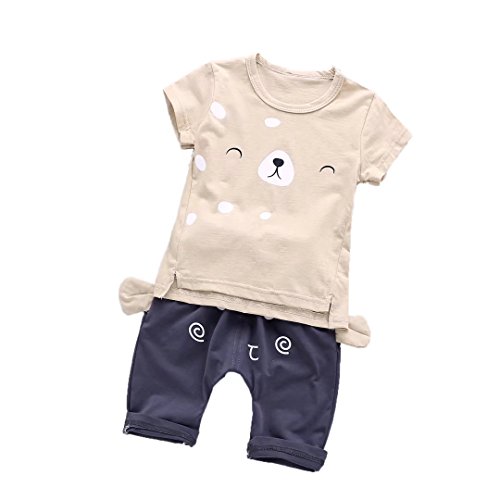 女の子と男の子の服 夏 上下セット Pojour 1-6歳キッズ用 子供 男女兼用 通気 綿 黄色(90cm)