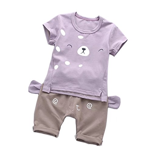 女の子と男の子の服 夏 上下セット Pojour 1-6歳キッズ用 子供 男女兼用 通気 綿 パープル(90cm)