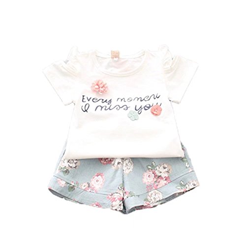 女の子の服 夏Tシャツ 上下セット Pojour 1-6歳キッズ用 子供かわいい花パンツ 綿 通気 グリーン(100cm)