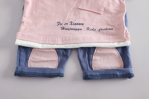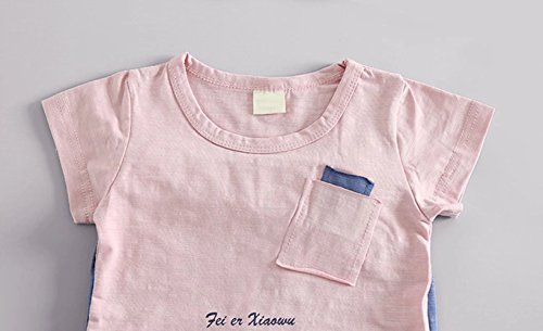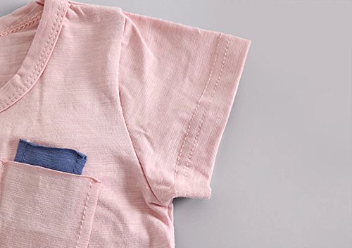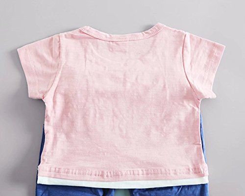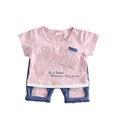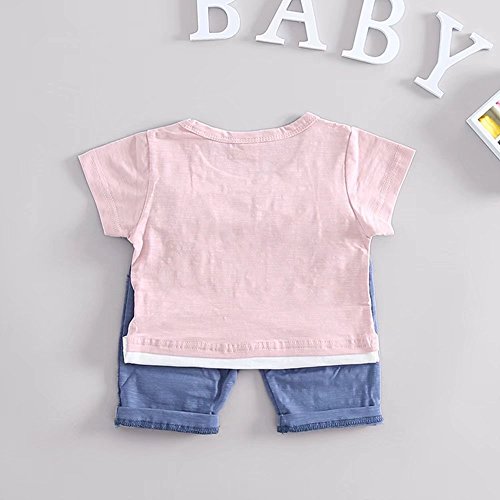 夏ベイビー服 子供Tシャツ+パンツ Pojour 男女兼用 1-6歳キッズ用かわいい2セット 子供ギフト 綿 通気 ピンク(70cm)