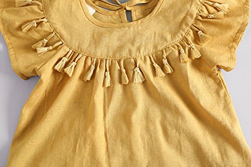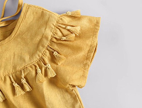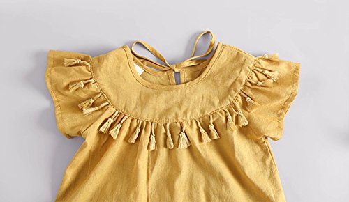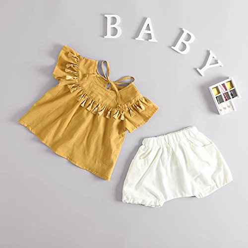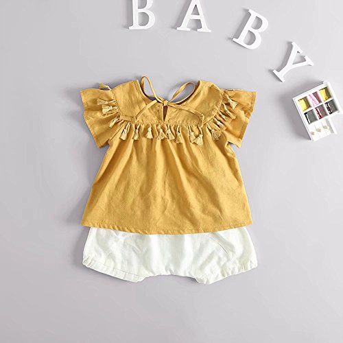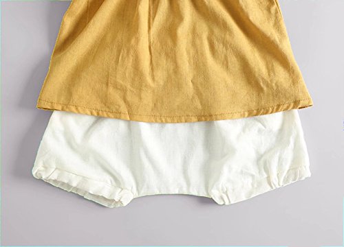 夏ベイビー服 Tシャツ+パンツ 女の子 Pojour 1-7歳子供かわいい無地2セット 綿 通気 黄色(80cm)